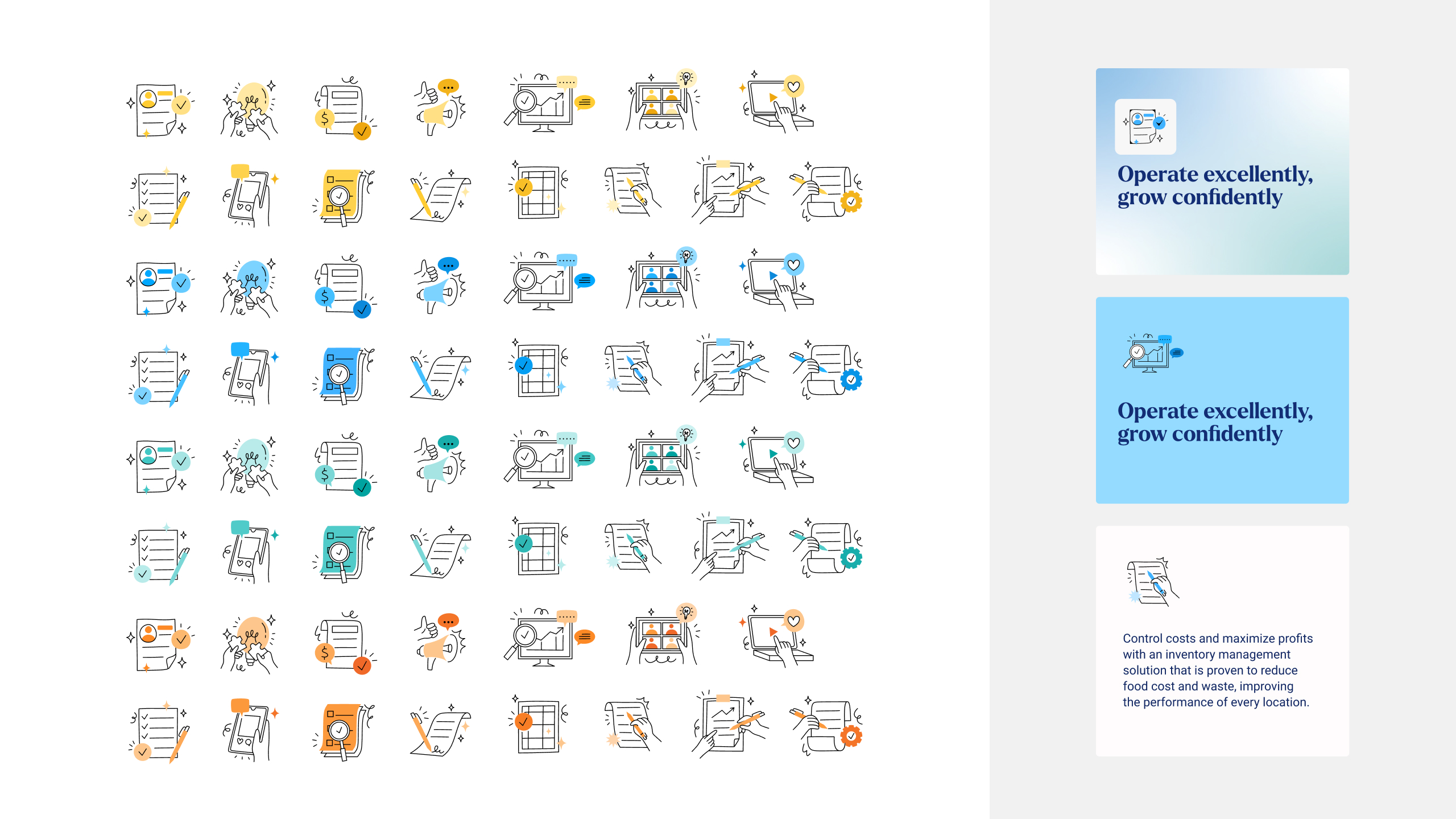 My biggest learnings were how to elevate a brand to meet client goals while preserving its original identity. I also learned how to build a cohesive design system that scales across marketing, print, and digital needs, including developing modular widgets and cards that simplify and represent the client’s software.