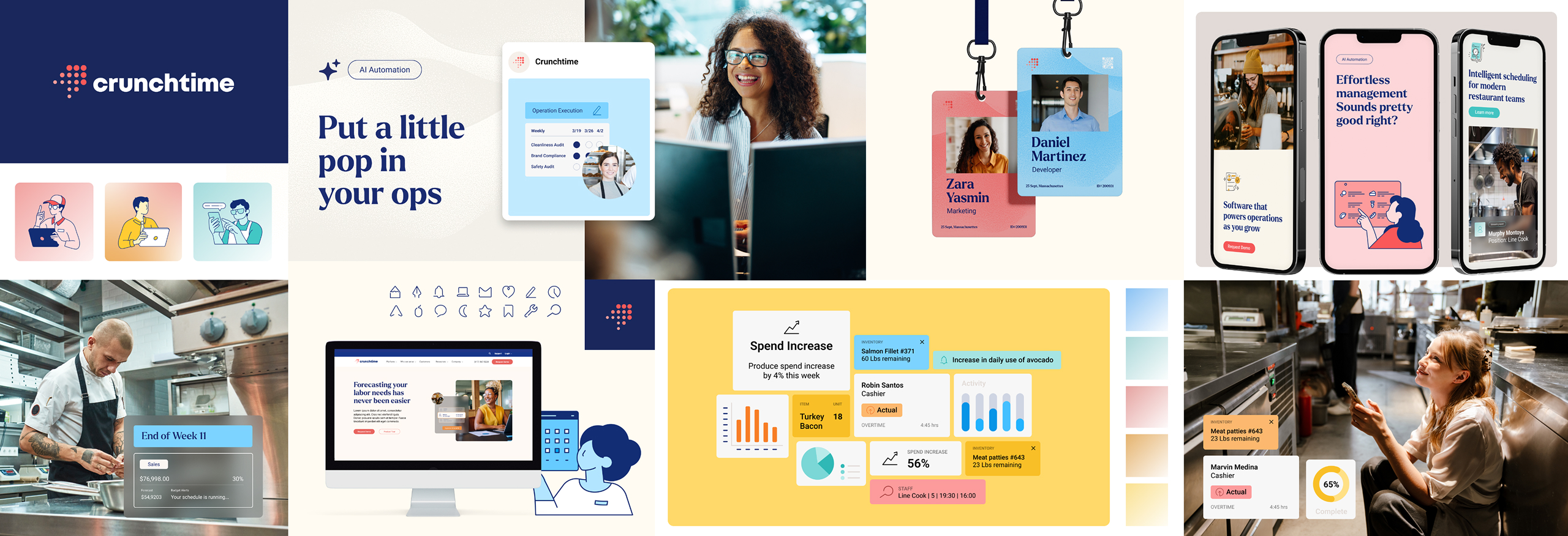 CrunchTime’s brand needed to evolve alongside its growing product and audience. The goal was to refresh the visual identity into a more flexible, modern system while maintaining brand recognition. As the Lead Designer, I led the rebrand from concept to completion—developing moodboard directions, defining the visual system, and creating the final design system, brand assets, and updated brand guidelines to support consistent rollout across digital and print.