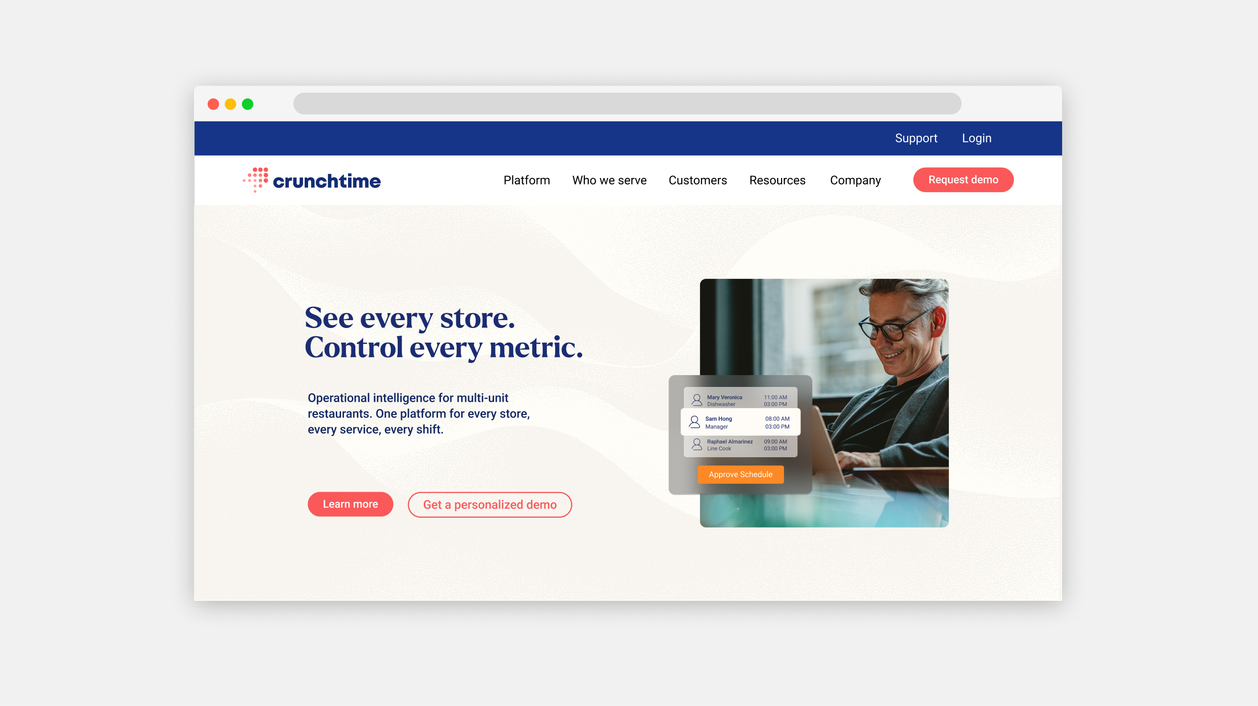 CrunchTime is a restaurant operations management platform that helps multi-unit restaurant brands streamline back-of-house operations, including inventory, labor scheduling, food safety, and training through a centralized system. The company is based in Boston, Massachusetts.