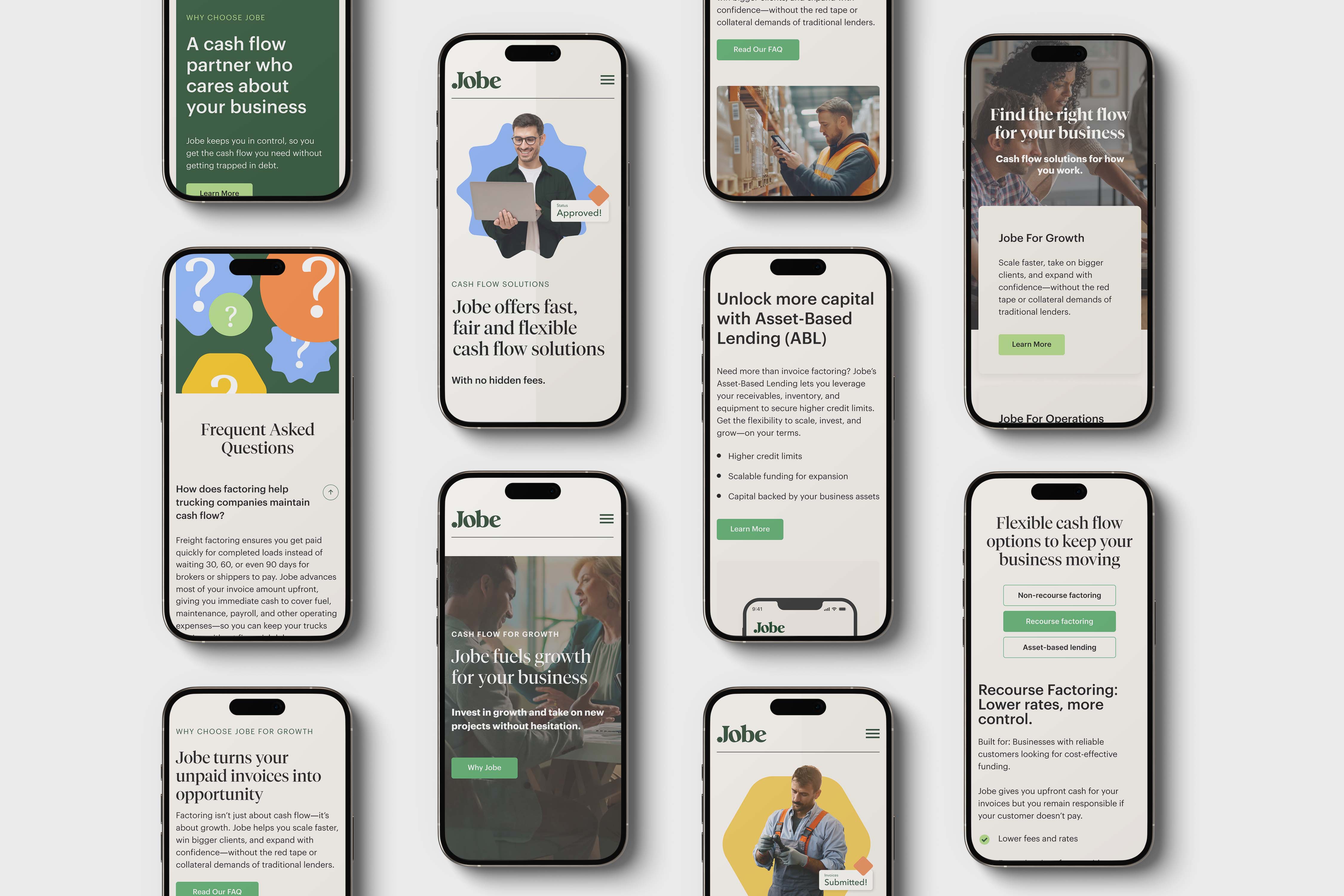 For Jobe Services Inc., we refined their brand strategy and redesigned their website to clearly communicate the value of invoice factoring, build trust with key audiences, and support business growth with a modern, mobile-first digital presence.